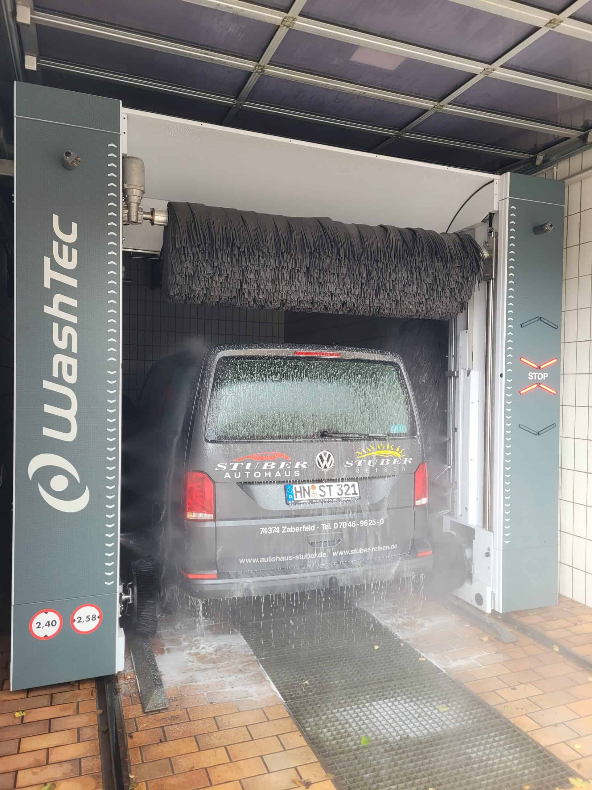 Beim Autohaus Stuber können Sie Ihr Auto nicht nur warten oder reparieren lassen, sondern es auch professionell reinigen! Unsere neue, moderne Waschanlage sorgt mit sanften, lackschonenden Bürsten für ein glänzendes Ergebnis – schonend für den Lack und gründlich in der Reinigung.